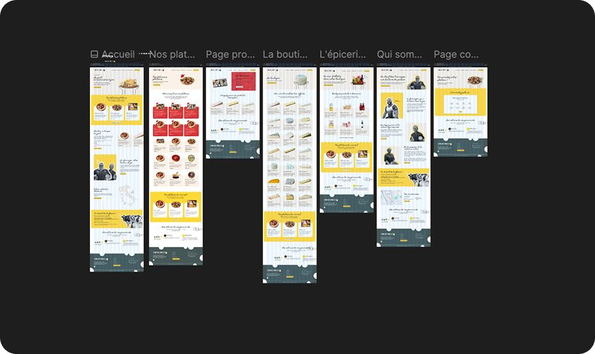 J’ai réalisé la maquette complète du site sur Figma : wireframes, hiérarchie visuelle, choix typographiques, palette de couleurs et déclinaisons responsive. J’ai structuré les composants pour garantir cohérence et évolutivité.